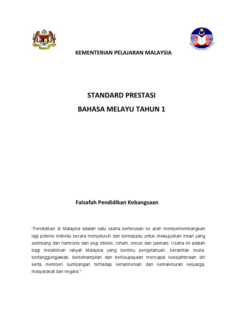 Standard Prestasi Bahasa Malaysia Tahun 1 Kssr Terbaru