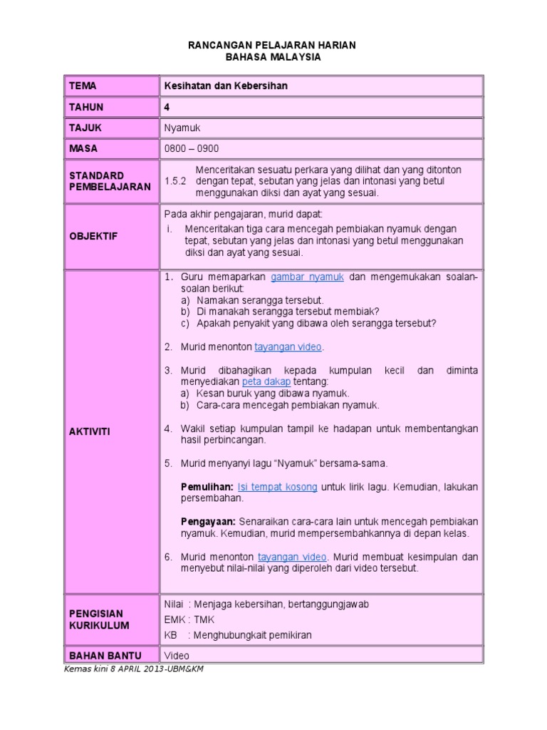 Contoh Rph Kssr Bm Thn 4 Shared By Pang Menchee