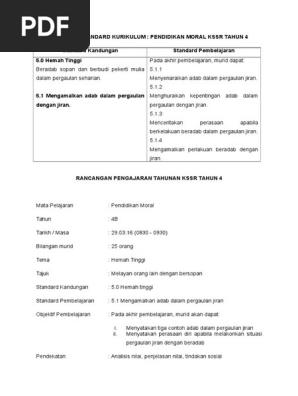 Rpt Pendidikan Moral Tahun 4 Sk Kssr