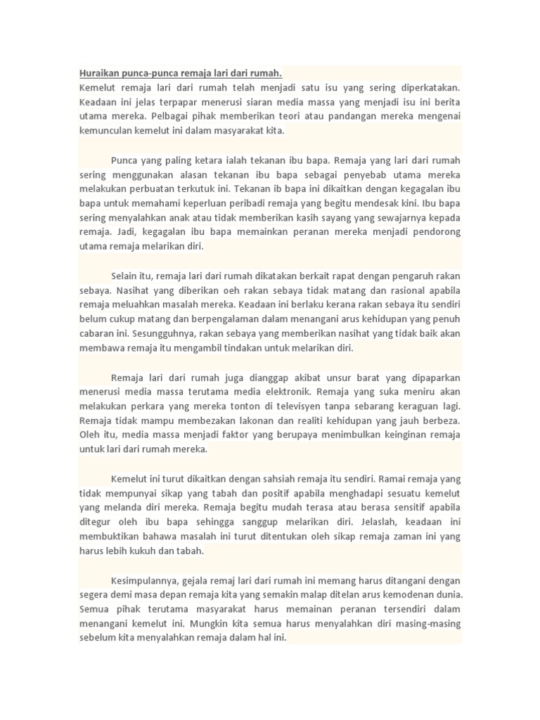Karangan Mengatasi Ramaja Lari Dari Rumah