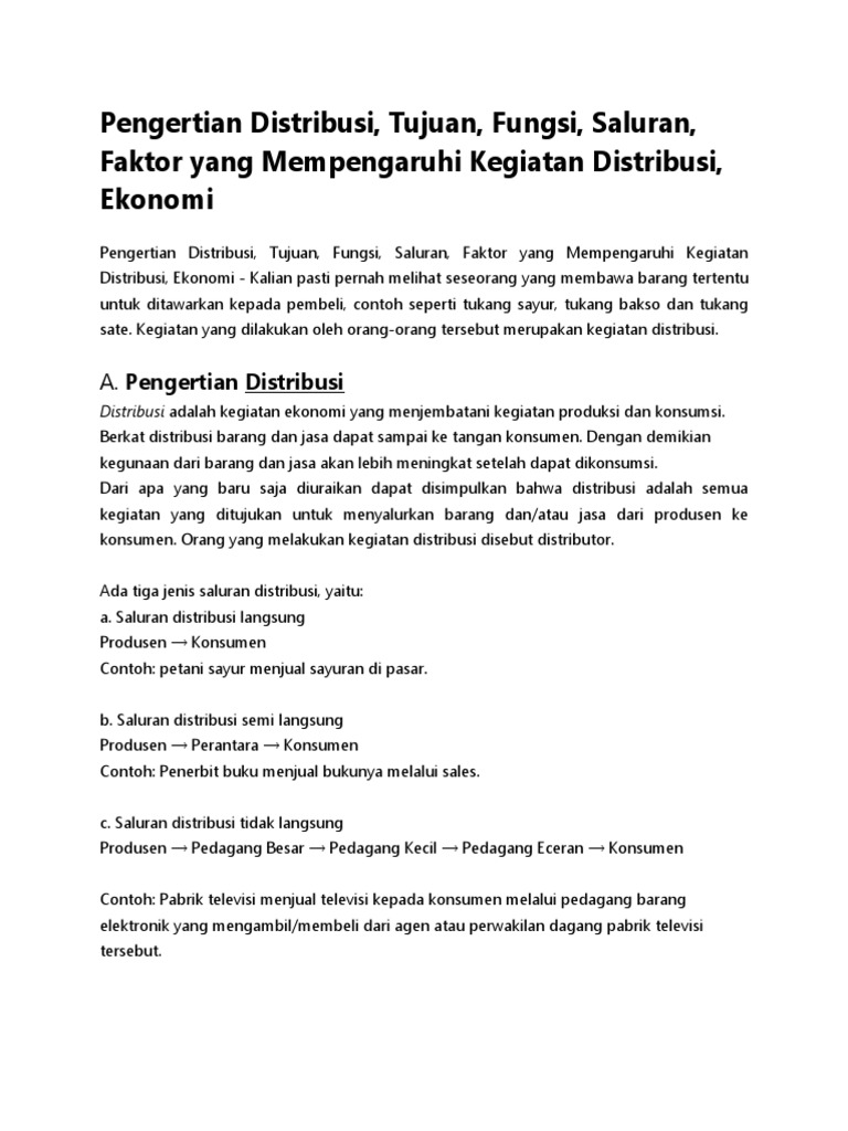 Pengertian Distribusi Tujuan Fungsi Saluran Faktor Yang Mempengaruhi Kegiatan Distribusi Ekonomi
