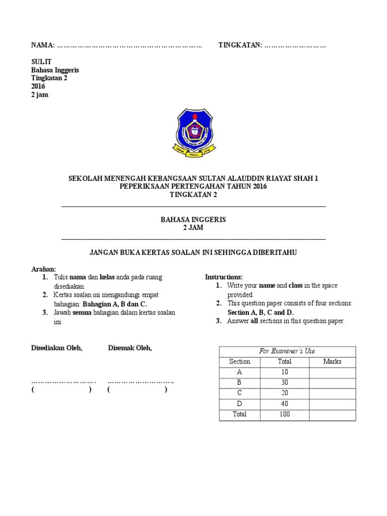 Pt3 English Mid Year Exam Form 3 2016 Q
