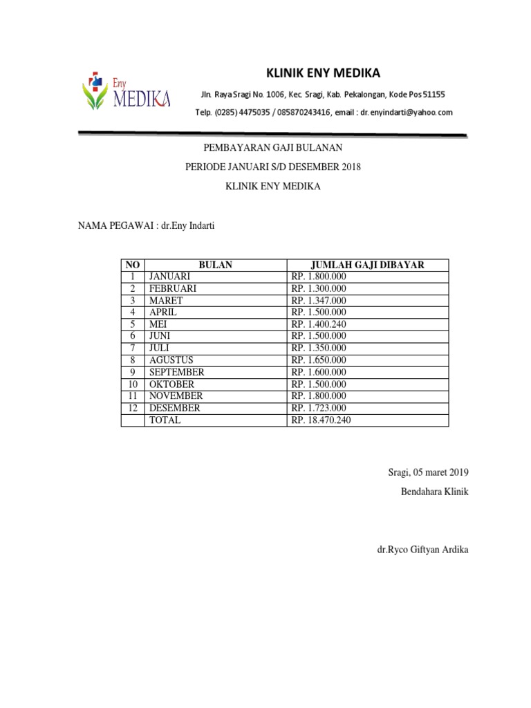 Klinik Eny Medika No Bulan Jumlah Gaji Dibayar