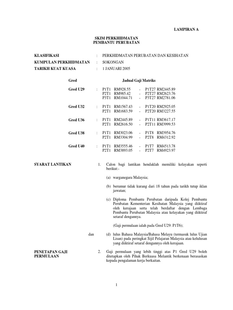 Gaji maksimum rm5 753 00. Penolong pegawai perubatan. Penolong pegawai perubatan hendaklah melepasi penilaian tahap kecekapan yang ditetapkan oleh ketua jabatan perkhidmatan untuk kenaikan pangkat. Pembantu perawatan kesihatan u11.