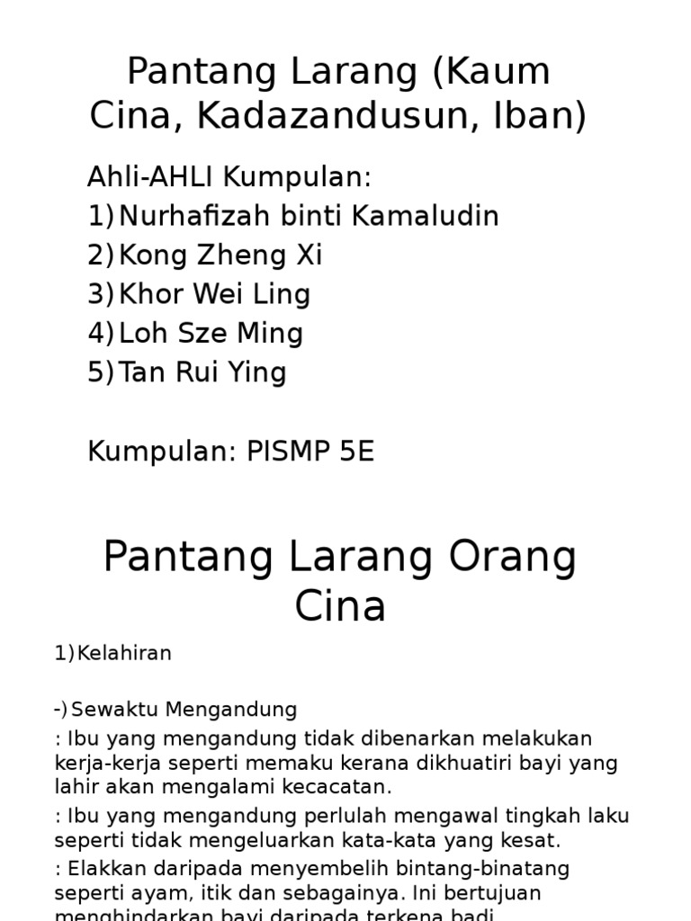 Pantang Larang Kaum Cina