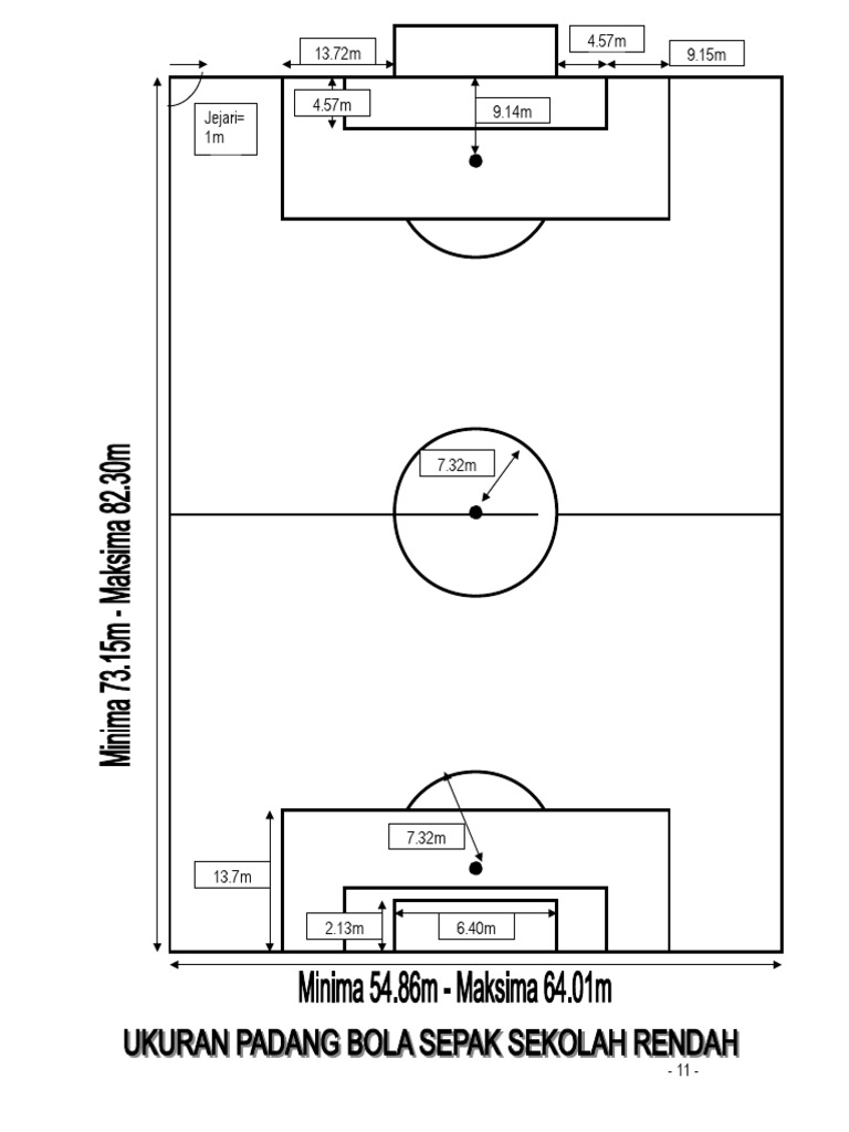 Ukuran Padang Bola Sepak Sekolah Rendah V1