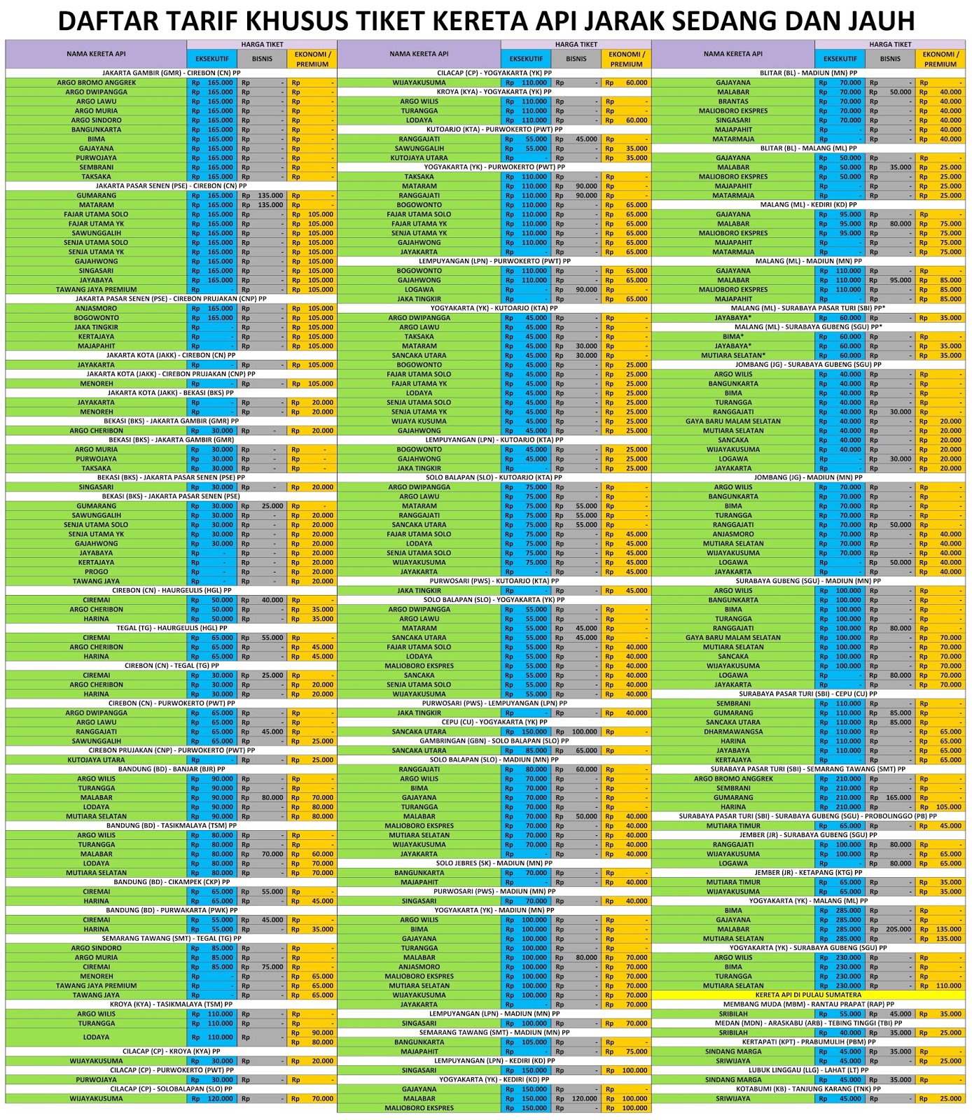 Tarif Khusus Tiket Kereta Api Jarak Menengah Dan Jauh Tahun 2020