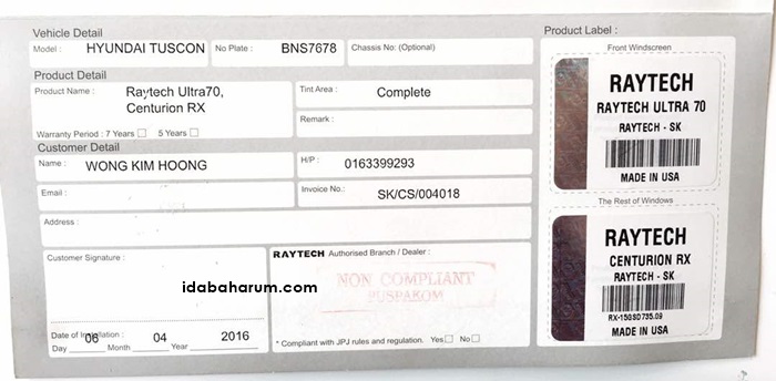 Raytech Kedai Tinted Kereta Yang Menawarkan Original Tinted G E D I K