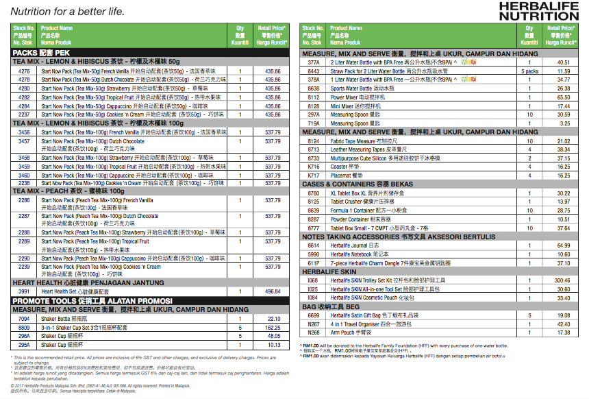 Herbalife Malaysia Price List 2018