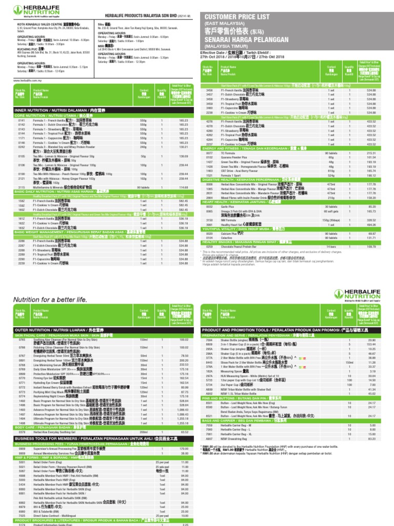 Herbalife Product Price List 2018 Pdf Health And Traditional Medicine