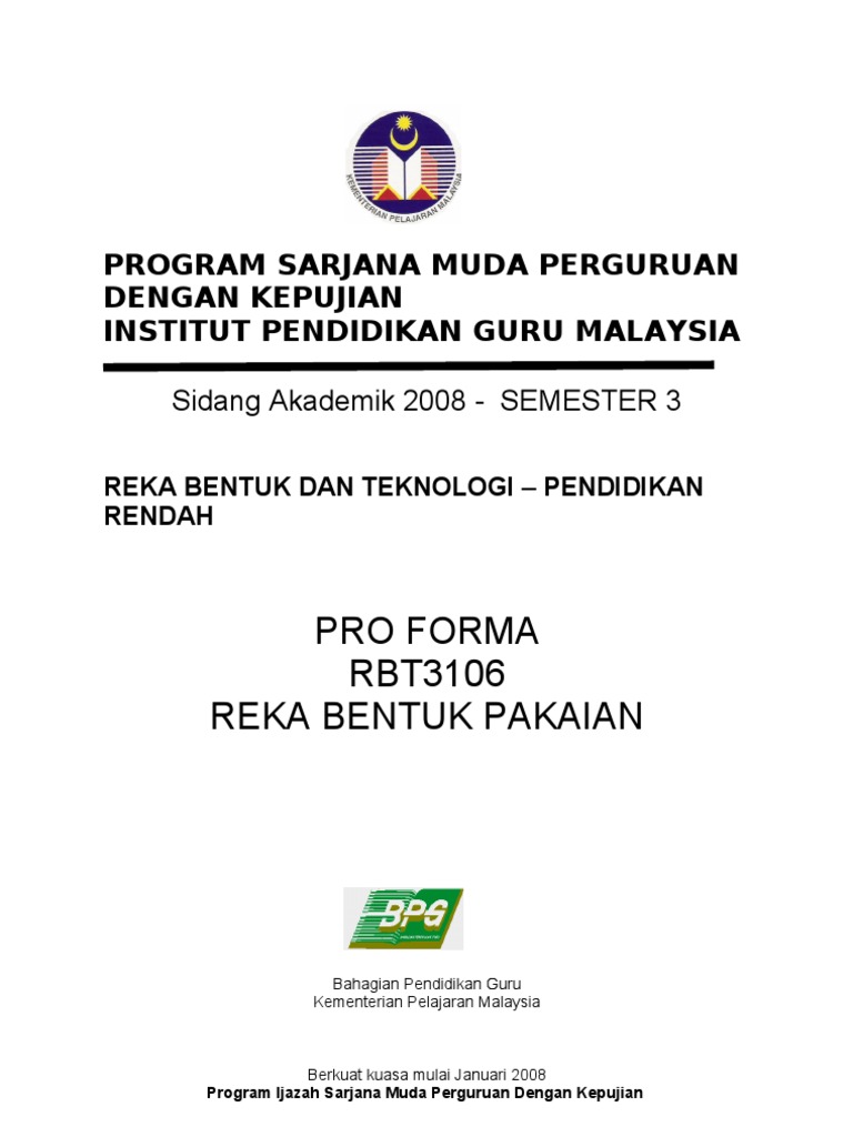 Pro Forma Kursus Program Ijazah Sarjana Muda Perguruan Dengan Kepujian Reka Bentuk Dan Teknologi Pendidikan Rendah