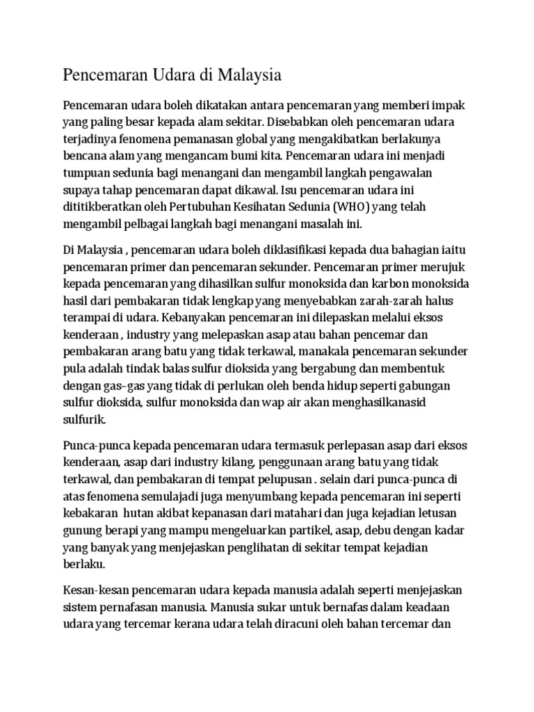Karangan Kesan Pencemaran Udara Lessons Tes Teach