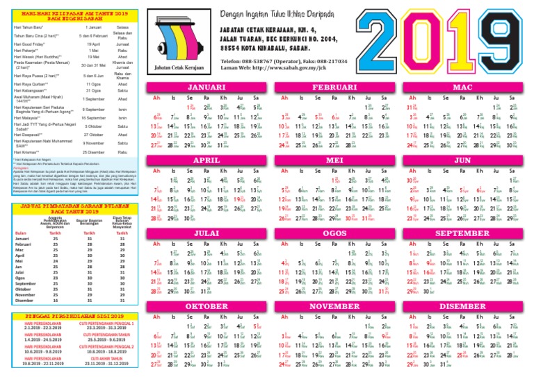 Januari Februari Mac Jabatan Cetak Kerajaan Km 4 Jalan Tuaran Beg Berkunci No 2004 88554 Kota Kinabalu Sabah