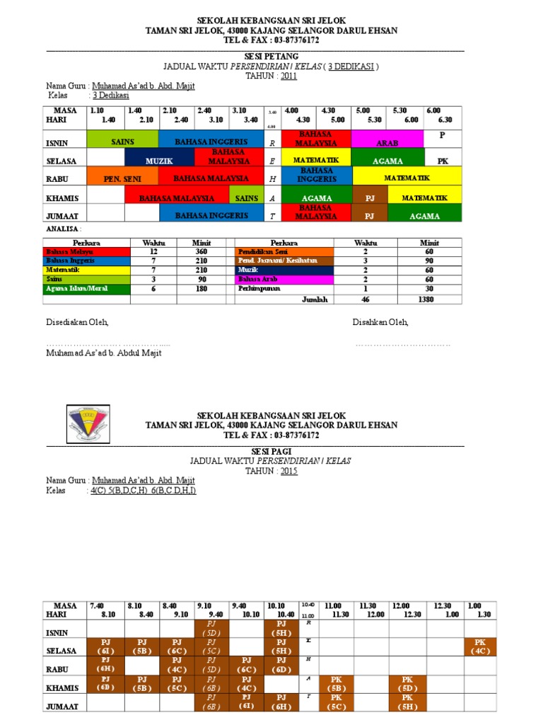 Sekolah Kebangsaan Petaling 1 Jadual Waktu Pembelajaran Sesi 2017