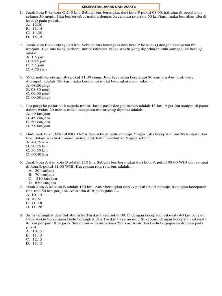 Kecepatan Jarak Dan Waktu