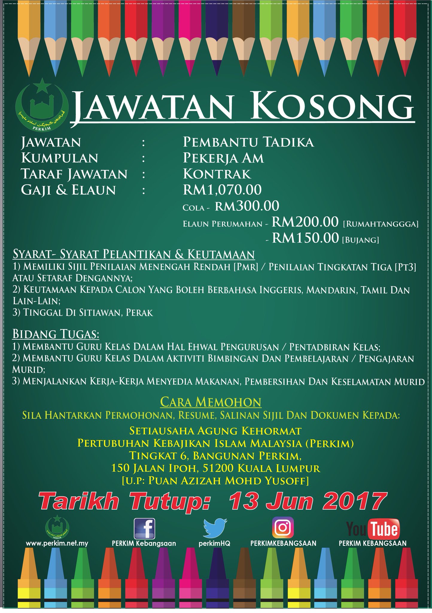 Perkim Kebangsaan Pa Twitter Jawatan Kosong Pembantu Tadika Tarikh Tutup 13 Jun 20177 Layari Https T Co Jtvde68047