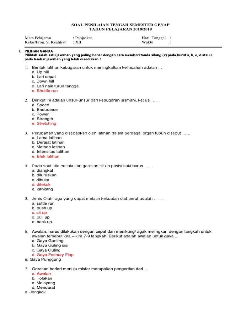 Contoh Soal Jawaban Penjaskes Part Iv Owl Educate