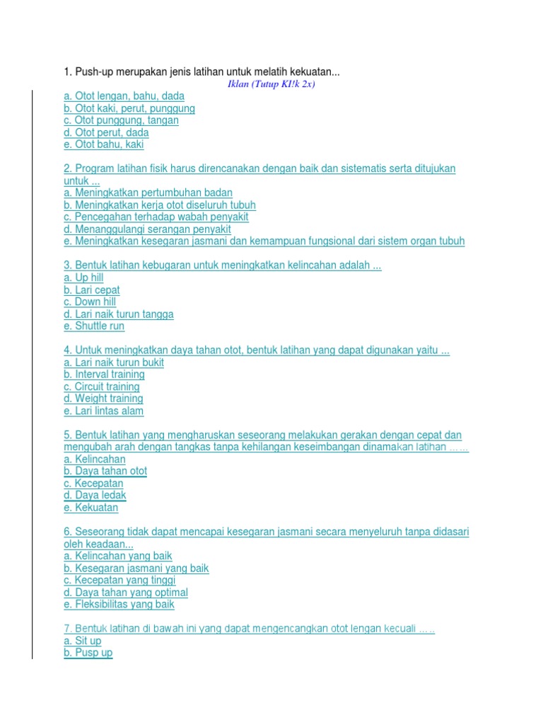 Soal Pendidikan Jasmani Dan Rohani Docx 1 Push Up Merupakan Jenis Latihan Untuk Melatih Kekuatan Iklan Tutup Kilk 2x A Otot Lengan Bahu Dada B Otot Course Hero