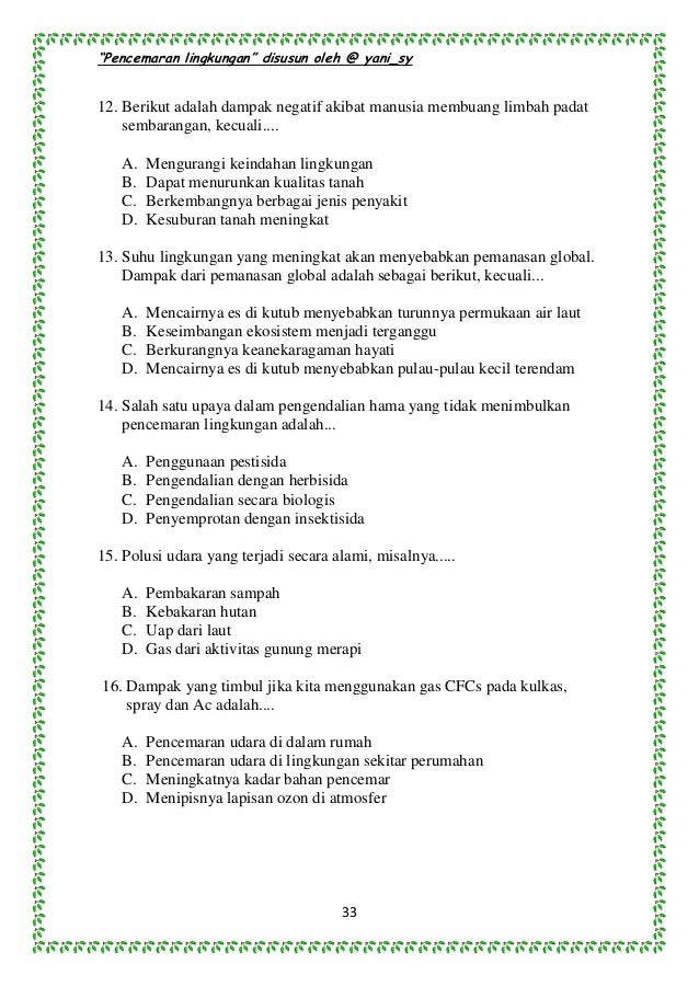 Macam macam perkembangbiakan aseksual adalah sebagai berikut. Soal dan jawaban polusi dan pencemaran soal 1. Berikut ini hal yang tidak akan terjadi jika pohon pohon di hutan ditebangi secara terus menerus tanpa penanaman kembali adalah. Berikut ini menurut knight dan kotschevar 2000.