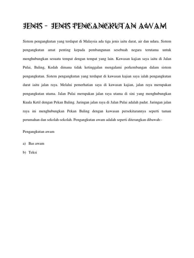 Jenis Jenis Pengangkutan Awam