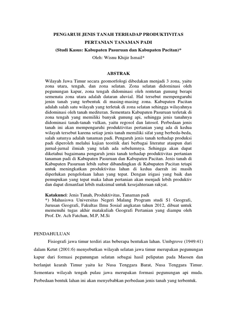 Perngaruh Jenis Tanah Terhadap Produksi Komoditas Padi