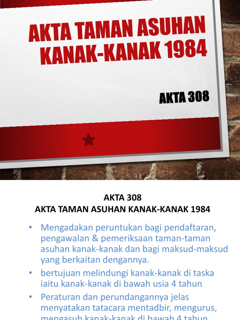 Akta 308 Akta Taman Asuhan Kanak Kanak 1984