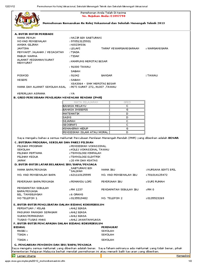 Permohonan Sekolah Menengah Teknik Secara Online Perokok Z