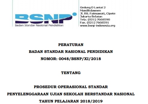 Prosedur Operasional Standar Pos Usbn 2019 Sd Smp Sma Smk Bsnp Informasi Pendidikan Dan Dunia Kerja