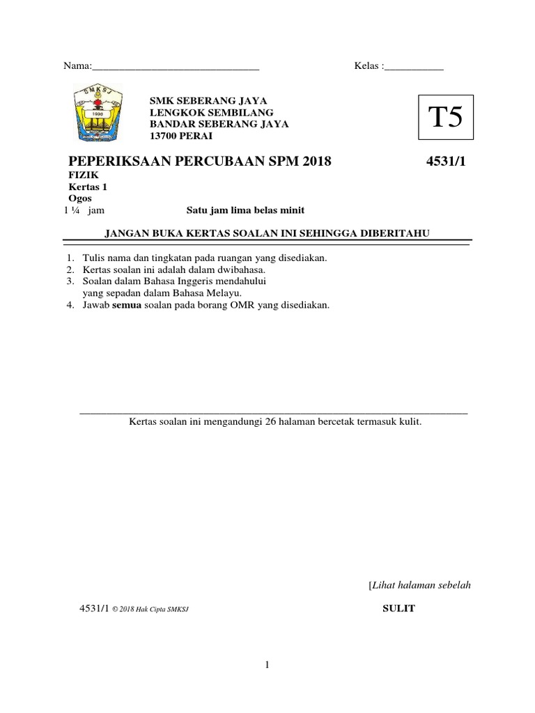 Kertas 2 Pep Pertengahan Tahun Ting 5 Terengganu 2018 Soalan