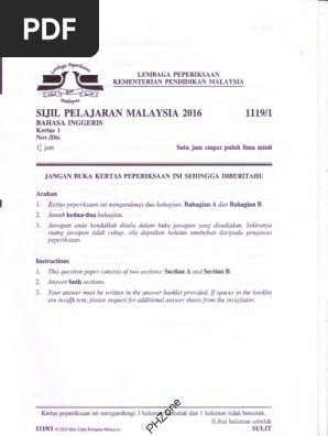 Kertas Sebenar Spm 2016 Bahasa Inggeris 1119 1 Communication Learning