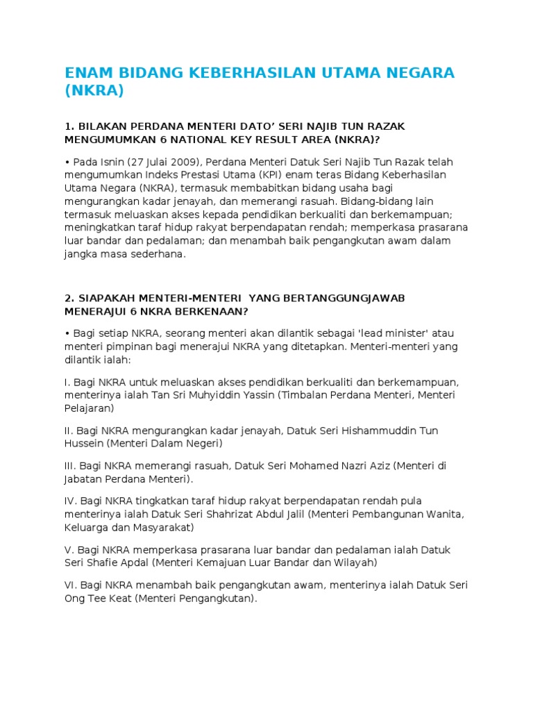 Bidang Keberhasilan Utama Negara Docx Bidang Keberhasilan Utama Negara Nkra U27a2 Merupakan Usaha Kerajaan Malaysia Untuk Memenuhi Keperluan Rakyat