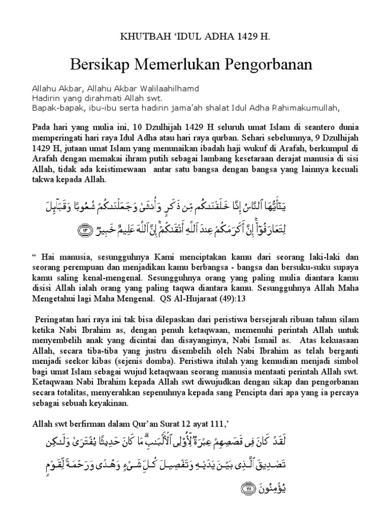 Doc Khutbah Idul Adha Di Jalan Caringin Indra Syamsi Academia Edu