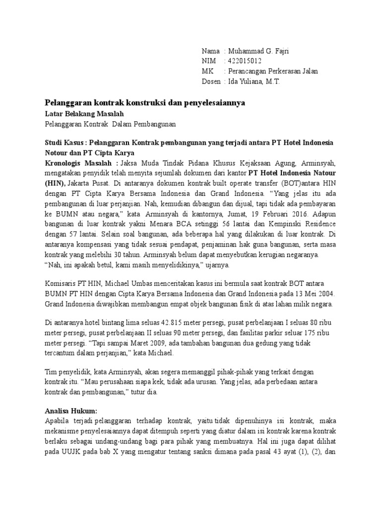 Kasus Pelanggaran Kontrak Kerja Kertas A4